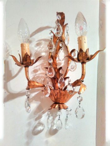 Ζεύγος Γαλλικές Μπρούτζινες Απλίκες με χειροποίητα κρύσταλλα και 5 βραχίονες, εποχής 1890